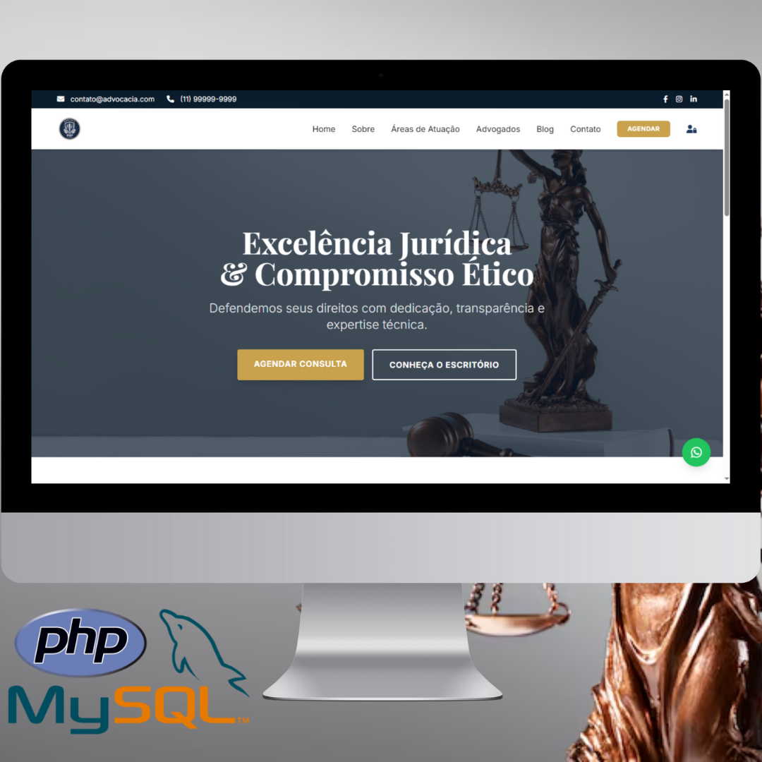 ⚖️ Sistema Completo para Escritório de Advocacia com Gerenciamento Total ⚖️ Tenha controle total do seu escritório jurídico em uma única plataforma moderna, segura e 100% administrável! 🚀 Ideal para advogados e escritórios que desejam organização, produtividade e comunicação automatizada com seus clientes. 💻 Tecnologia robusta e atual Desenvolvido em PHP (MVC) com banco de dados MySQL/MariaDB, o sistema oferece alto desempenho e segurança. Frontend moderno com HTML5 + Tailwind CSS + JavaScript, ícones com FontAwesome e integração avançada com WhatsApp via Evolution API. 📲 Integração com WhatsApp Mensagens automáticas para confirmações, cancelamentos, lembretes e muito mais — diretamente no WhatsApp! 🤖💬 🌐 Site Institucional Profissional 🏛️ Home personalizável 👨⚖️ Equipe de advogados 📰 Blog jurídico 📅 Agendamento online 🔐 Área de login para clientes e administradores 👤 Painel do Cliente 📊 Dashboard com agendamentos 📂 Documentos disponíveis para download ✏️ Atualização de perfil 🔒 Logout seguro 🛠️ Painel Administrativo Completo 📈 Indicadores e gráficos 📅 Gestão de agendamentos 👥 Cadastro de clientes 📁 Upload e organização de documentos 📝 CMS para blog e conteúdo ⚙️ Configurações e templates de mensagens 🔒 Segurança e logs 🚀 Transforme a gestão do seu escritório com tecnologia inteligente e automação! 👉 Demonstração: https://advogadophp.criarsitesnaweb.com.br/ 👉 Adquira já: https://www.criarsitesnaweb.com.br/produto/sistema-completo-para-escritorio-de-advocacia-com-gerenciamento-total/ ✨ Mais organização, mais eficiência e mais tempo para o que realmente importa: seus clientes! ✨